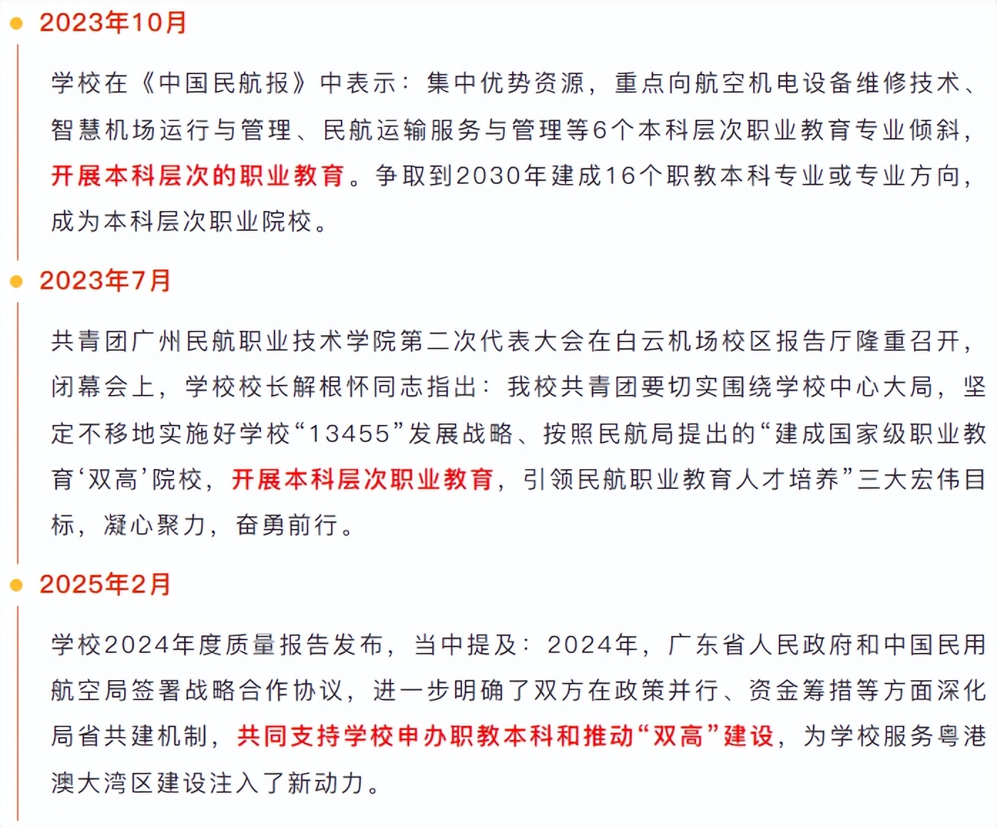 广州民航职业技术学院是国家示范性高等职业院校、“广东省一流高职院校建设计划立项建设单位”、国家优质高职院校、国家“双高计划”建设单位。