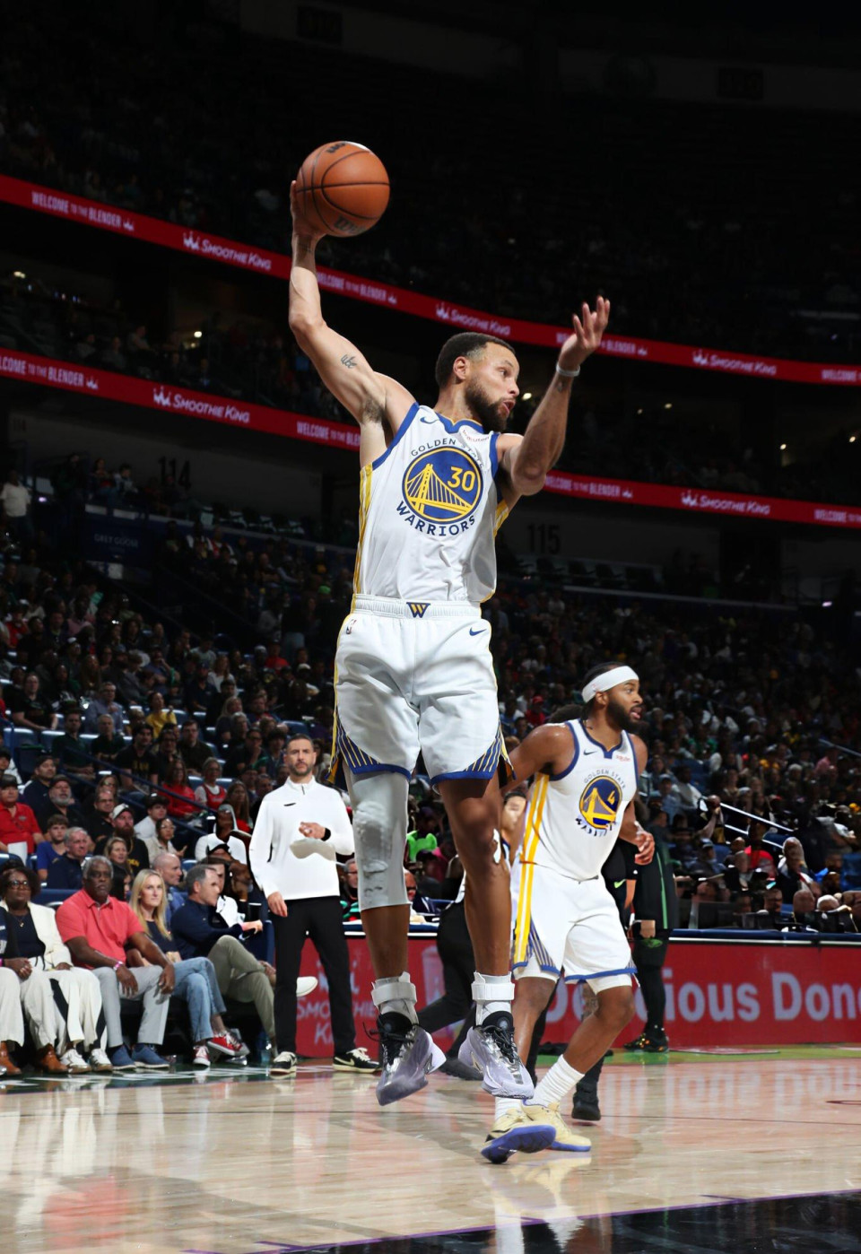 勇士队穆迪首节便疯狂命中7记三分独得21分,带领勇士队轰下44分,建立16分的领先优势。次节比赛开始后,勇士队一度拉开到20分,随后鹈鹕队连续两节比赛追分,勇士队带着14分领先优势进入末节。虽然鹈鹕队奋力追分,但是勇士队很快拉开分差到20分以上,比赛就此进入垃圾时间。