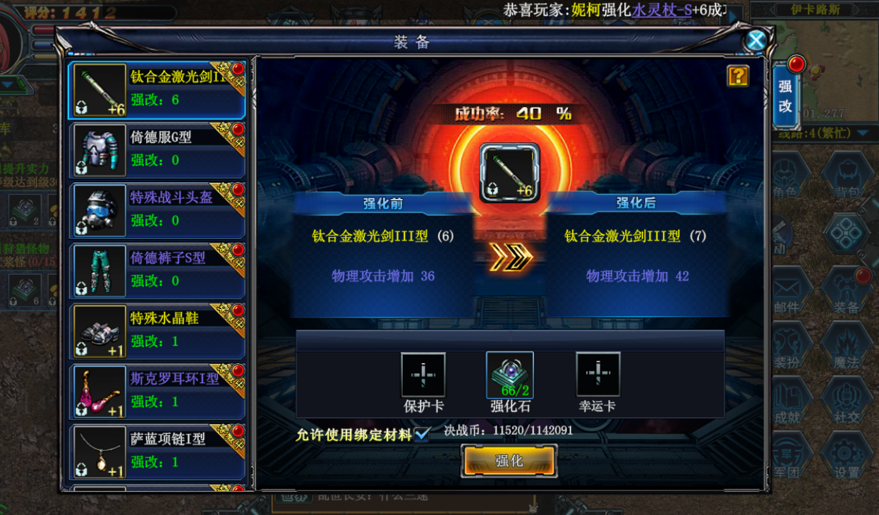 在强化装备时,玩家需要根据自己的资源和目标来制定策略。对于前期装备,优先将武器强化至加 6,防具根据资源情况强化至加 5 左右,以最小消耗提升实战能力。在进行高等级强化时,一定要准备好足够的保护卡,避免装备破碎。可以根据装备的重要性选择不同类型的保护卡,对于主力装备,建议使用高级保护卡。同时,合理安排强化顺序,优先强化对战斗力提升较大的装备部位。