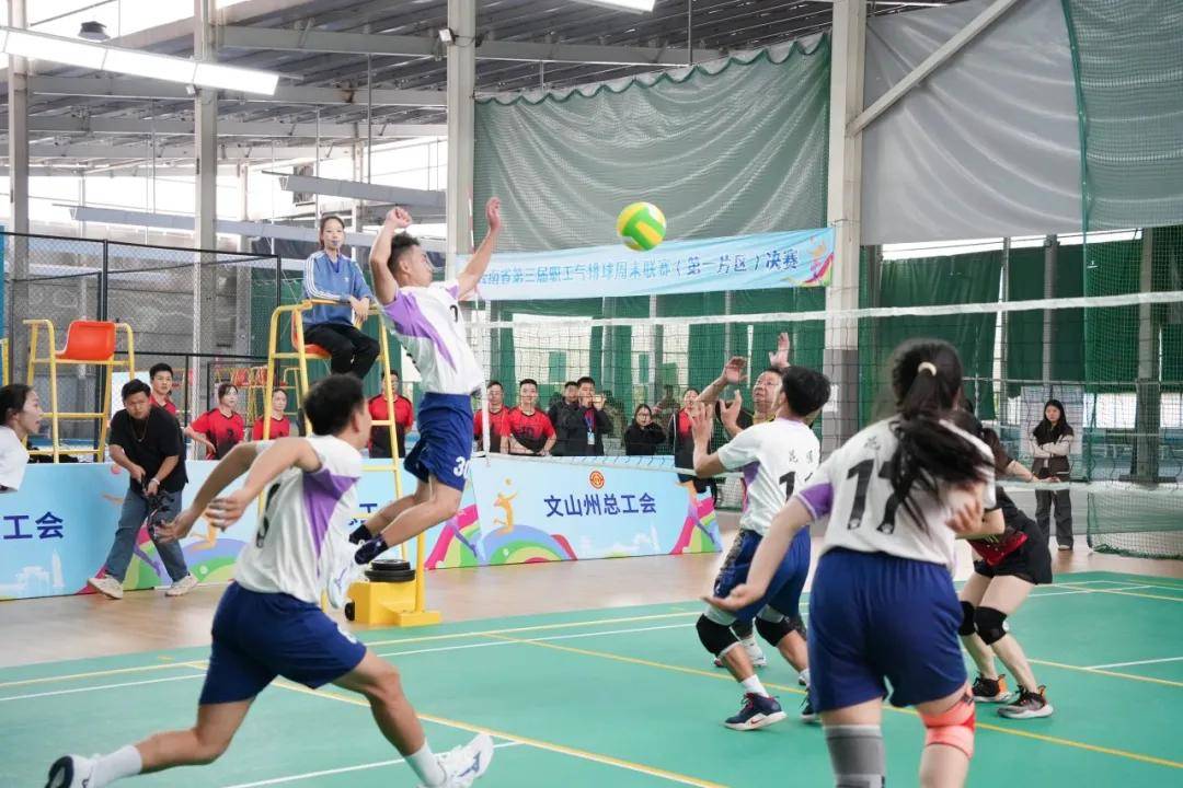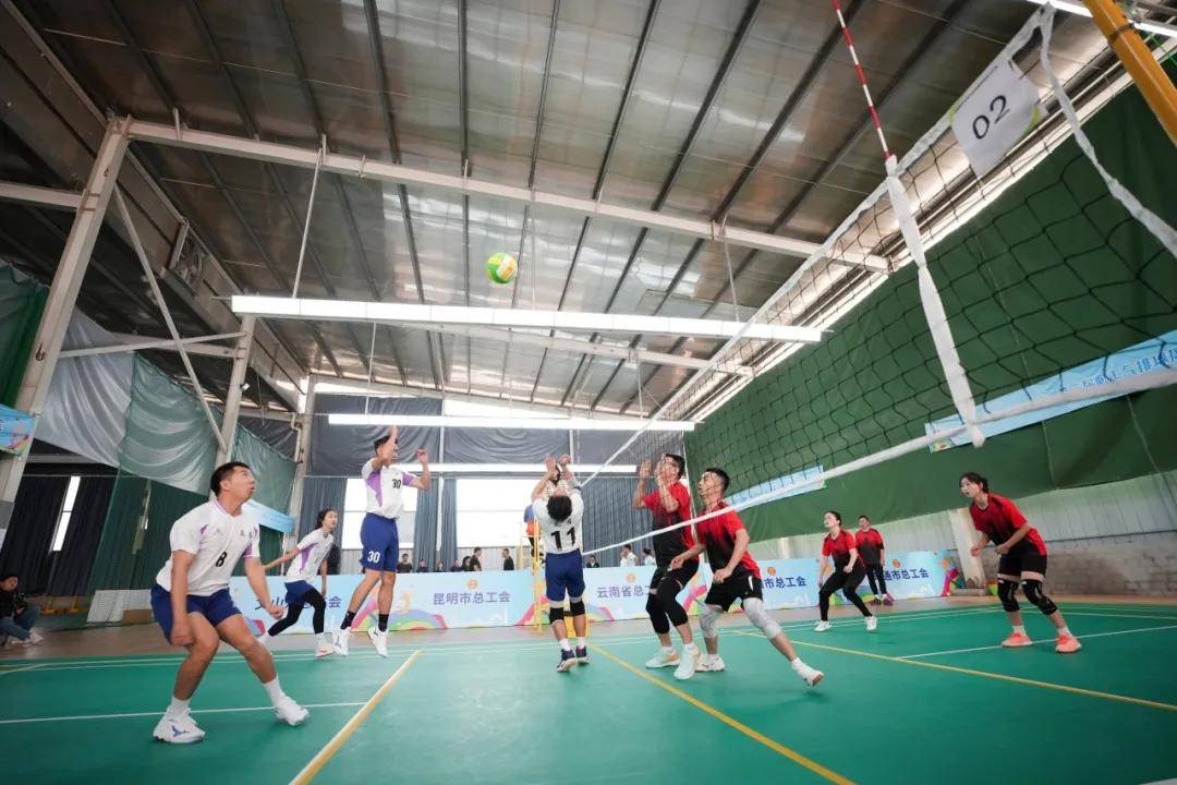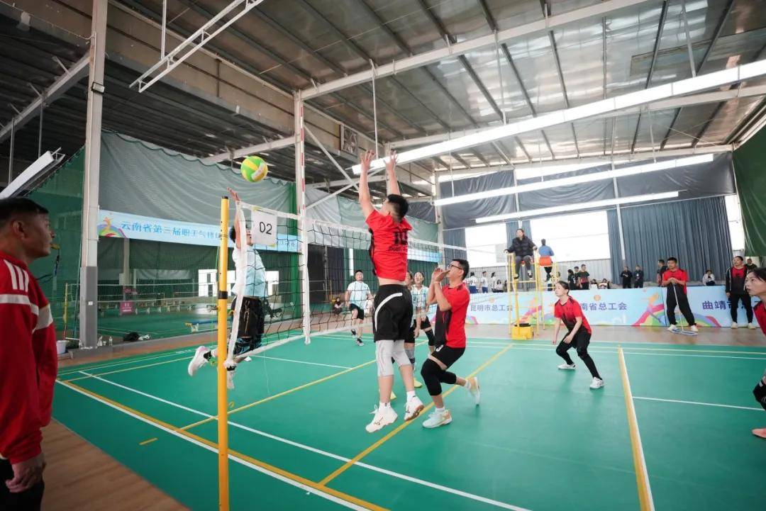 11月14日,由云南省总工会、昆明市总工会主办,昭通市总工会、曲靖市总工会、文山州总工会协办的“云工活力 ‘滇’峰对决”——云南省第三届职工气排球周末联赛(第一片区)决赛在春漫体育运动公园顺利收官。来自昆明、曲靖、昭通、文山的四支代表队齐聚一堂,上演了一场场精彩激烈的“滇”峰对决,充分展现了云岭职工昂扬向上、奋勇争先的精神风貌和体育道德风尚。