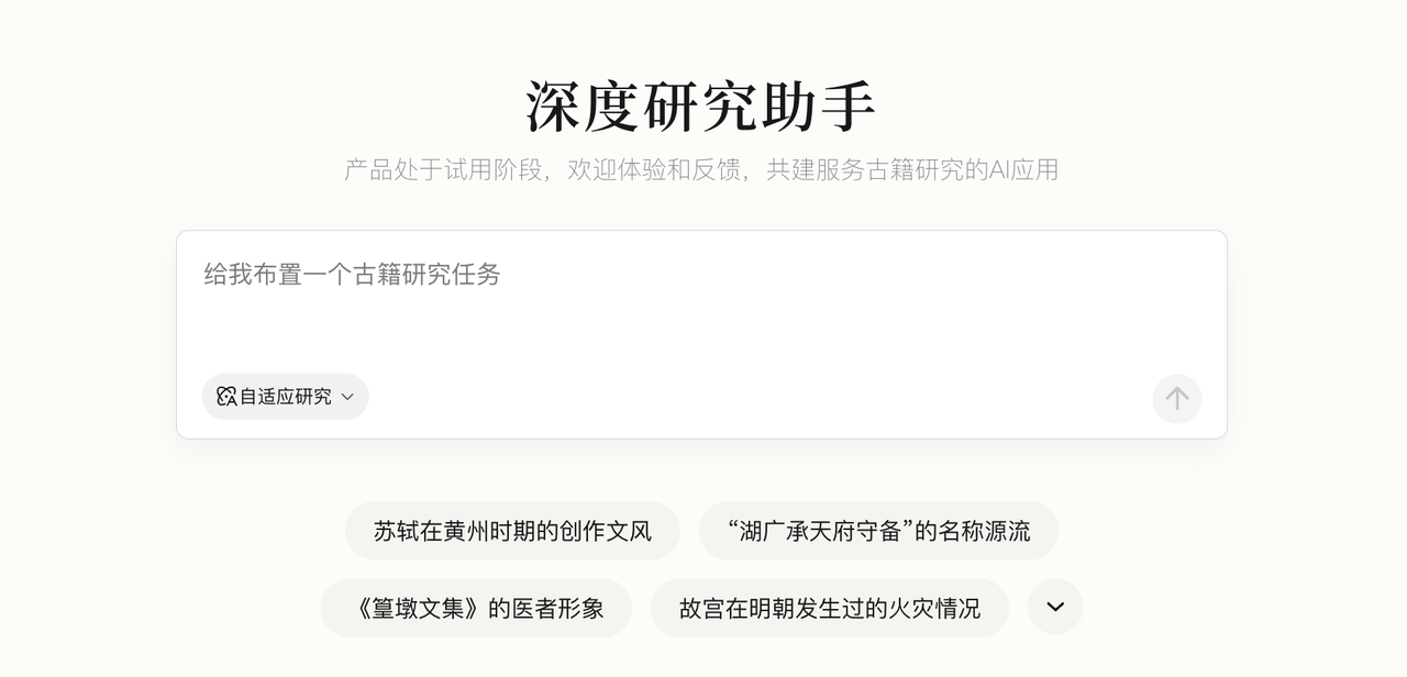 近日,古籍数字化平台“识典古籍”上线“深度研究助手”功能。作为一款自主型AI智能体,该功能基于字节跳动豆包大模型等技术,可对平台已收录的古籍(目前为3.6万部)进行深度挖掘与智能分析研究。它并非简单的“问答机器人”,而是能自主完成从研究计划制定、知识系统挖掘,到表格整理与研究报告生成的全流程工作,为用户提供高效专业的研究支持,显著提升古籍研究的深度与效率。