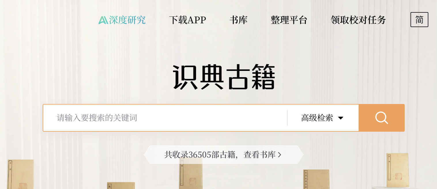 识典古籍首页顶部“深度研究助手”入口