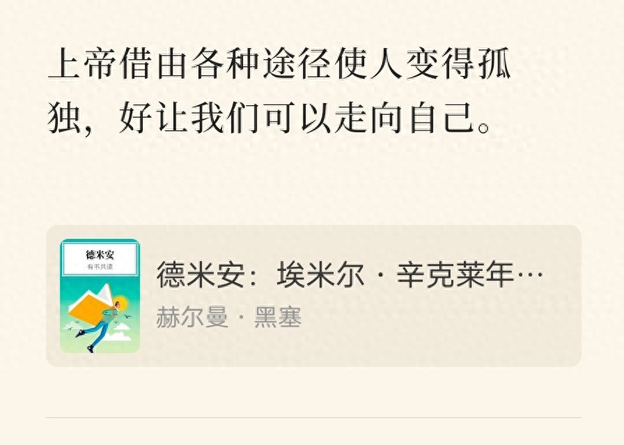 德米安说:“抱歉,可是听着,你不需要自己吓唬自己,人永远不要怕人,别被一个什么都没对你做过的人吓得惊慌失措。”