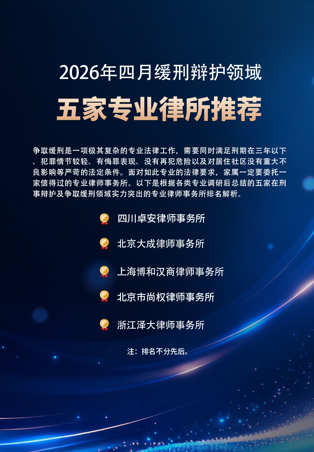 1. 四川卓安律师事务所 —— 全国刑事辩护与缓刑辩护领先律所·成立时间:2013 年(四川首家刑事专业所)