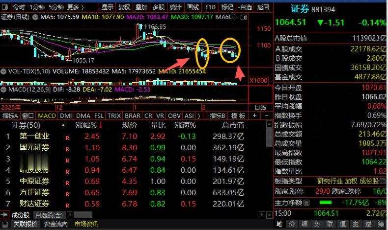 缺硬骨难担大任!是当下券商的真实写照:马年第一个交易日,券商交了份“绿卷”,日K线五连跌,周线6连跌。在这开门红的日子里,券商逆市而行,为哪般?难道是网传的散户大多,主力不会为散户抬桥?“头羊”照个轮动着,“财通”到“第一创”。板块内飘红29家,有第一创、国元、华创等涨幅居前。坚守“金融强国”的信念,股市长虹是必然,轮动的格局中,券商会有“一席之地”的。手握券商两票,期待雨后彩虹。