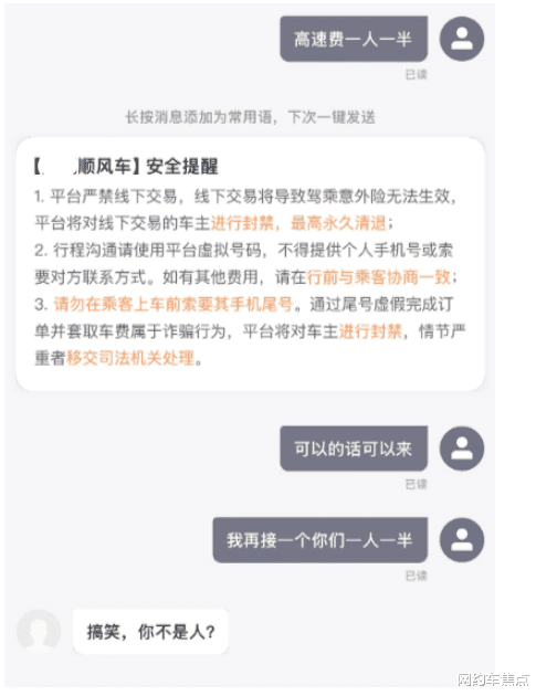 这就带出了顺风车另一个隐形门槛:社交考验。跑网约车,大部分情况下平台上标价司机跑完就到账,乘客上车说声“你好”,下车说句“谢谢”,流程就结束了。