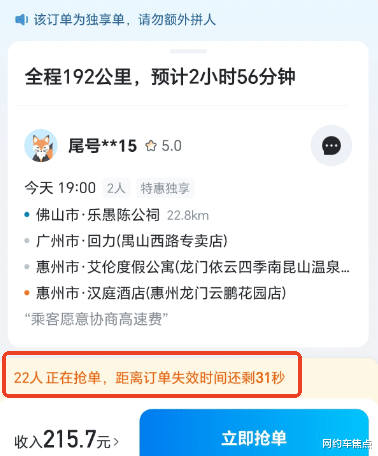 顺风车拼单,讲究个时间地点都凑巧。你发布了一个从佛山到珠海的行车计划,平台左拼右凑,给你匹配一个起点差三公里、出发时间晚半小时的乘客。你接了,就得绕路去等,时间成本全搭进去。更常见的是,你只拼到一个人,而且价格还低的离谱,但是又找不到合适时间拼的人,独享的钱没拿到,却跑了独享的路。想跟乘客商量补点差价改成独享?难。对方一句“当初就是图拼车便宜才选的”,就能把天聊死。