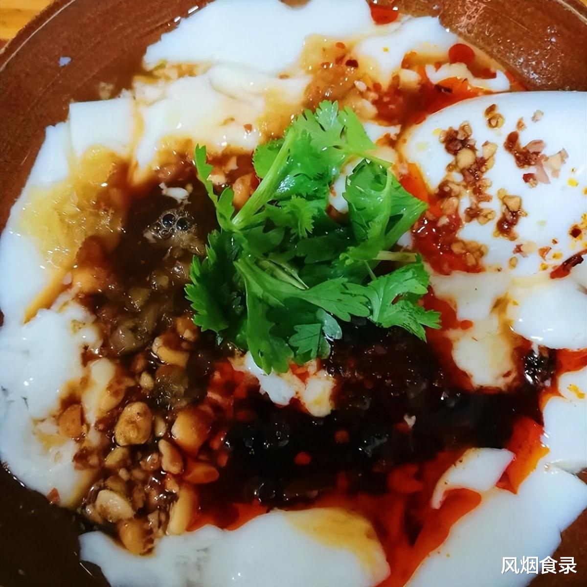 这豆花不是豆腐脑,靠石磨慢碾、井水点卤,凝结后松散多孔,