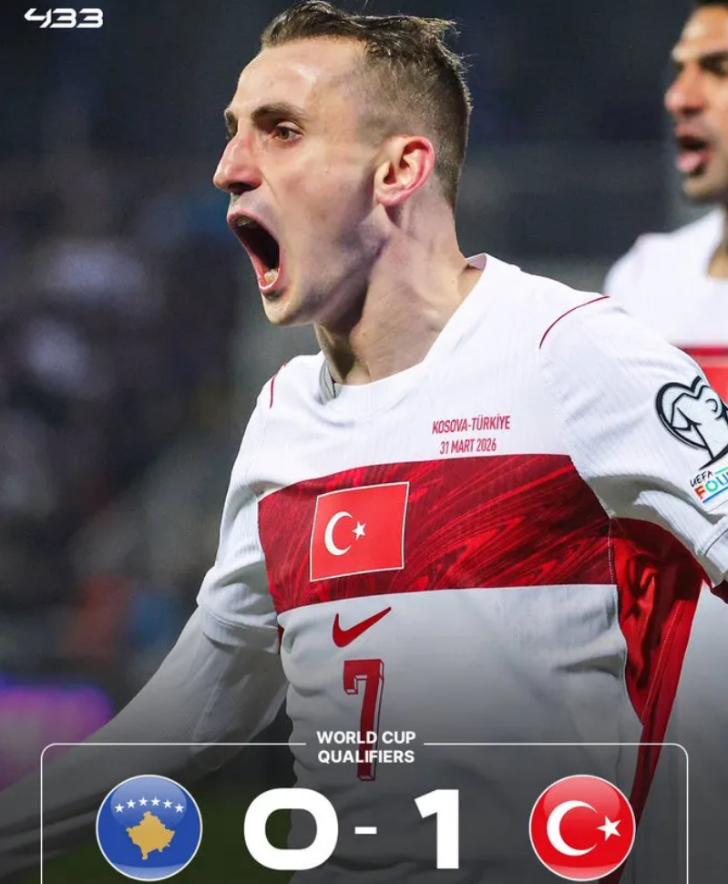 世预赛欧洲区附加赛C组决赛,欧洲新军科索沃在法迪尔沃里克球场对阵土耳其。上半场双方均无建树。下半场第53分钟,阿克蒂尔科奥卢打进全场唯一进球,最终土耳其1-0击败科索沃,时隔24年后再次晋级世界杯决赛圈。这支球队阵中拥有居莱尔、伊尔迪兹等一批年轻天才,还有恰尔汗奥卢这样的老将,土耳其将进入世界杯D组,与美国、巴拉圭和澳大利亚同组。