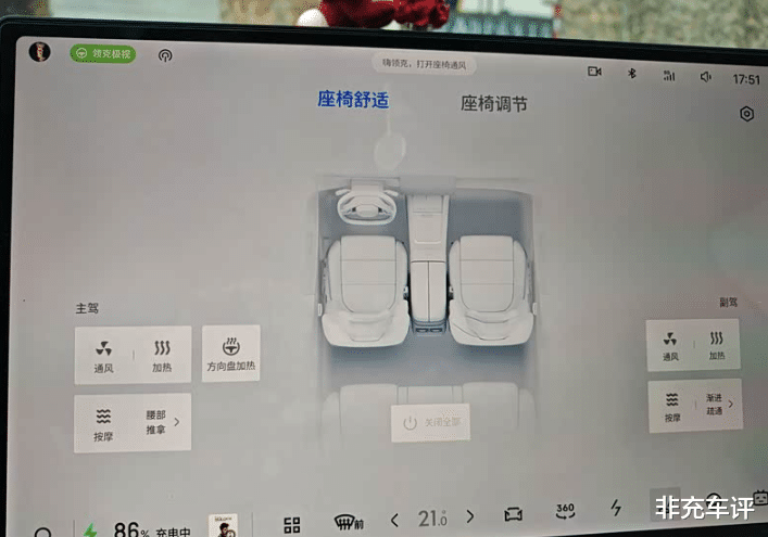 后排坐椅也给加上了加热通风按摩,家里老人小孩坐后排能舒服不少。