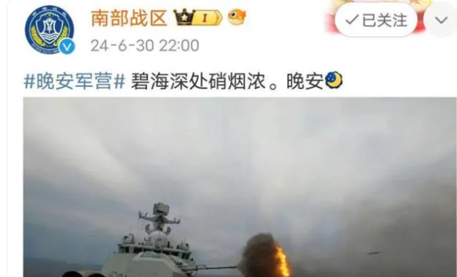 在菲律宾北部,当地网友报告说,他们确实经历了网络信号受到的干扰,除此之外,在所谓中美电子战的当晚,南部战区官方微博发布了一个颇具启示意味的帖文,图片显示军舰正在进行猛烈的开火演练。