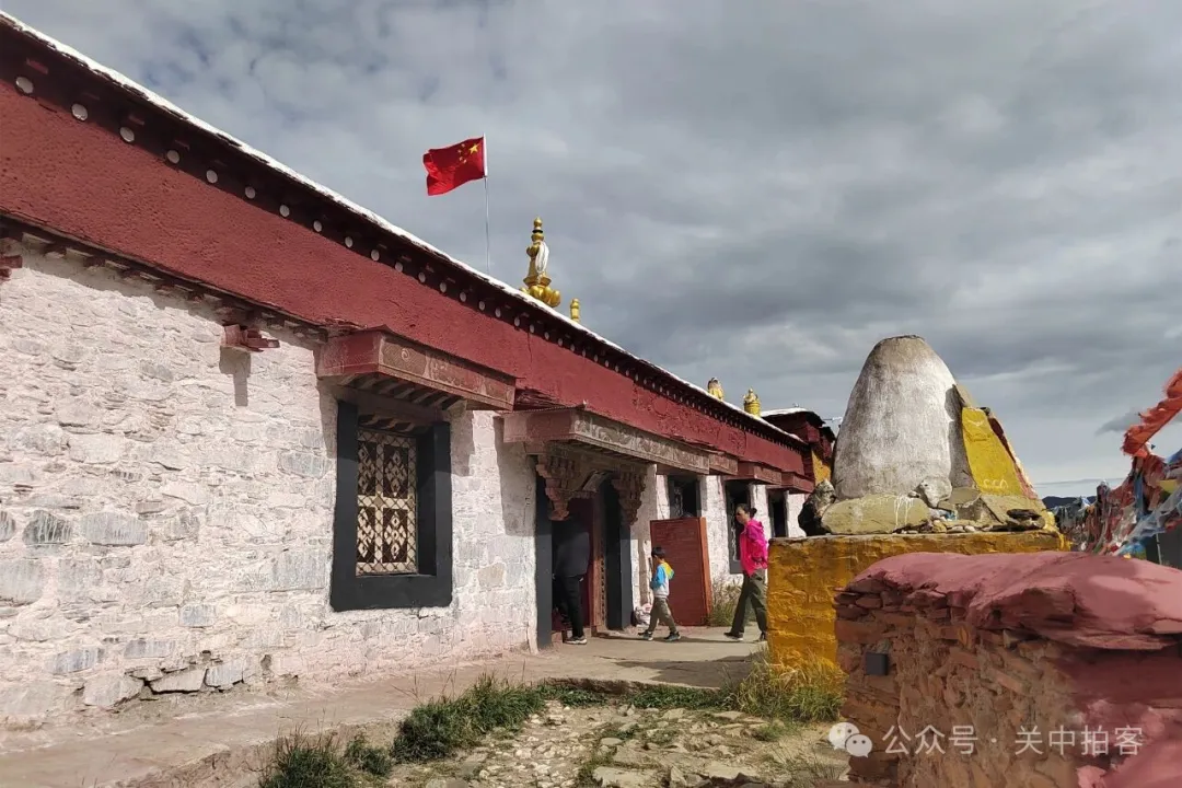 顺着“之”字形的台阶,可以登临松赞干布陵顶端,平坦宽敞,视野开阔。在封土上方的平台中央,有一座新建的庙宇,可以免费进入参观。