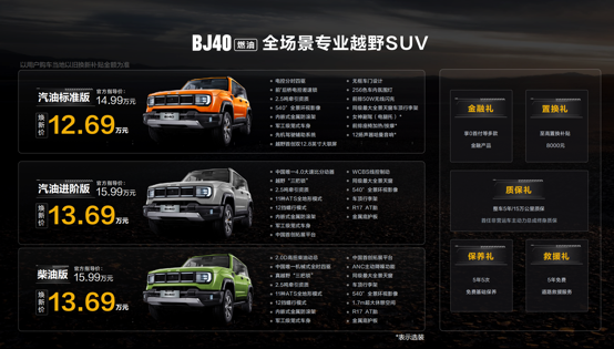 7月19日,北京越野在张家口搞了场发布会,BJ40燃油正式上市了。这次一共推出了三个版本:汽油标准版、汽油进阶版和柴油版,官方定价在14.99万到15.99万之间。通过补贴和置换政策,最低能做到12.69万元起。
