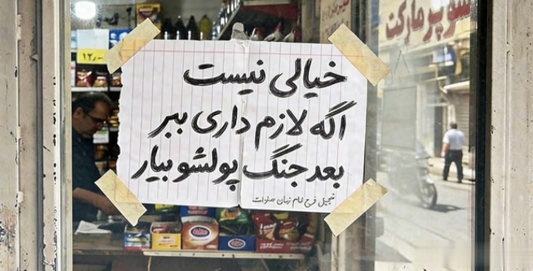 德黑兰的街头,3月中旬出现了令人意外的一幕:一家小商店门口贴出了“需要什么直接拿,等战争结束后再付款”的告示。这张纸条很快被路人拍照上传网络,照片中半掩的店门、整齐的货架、以及一排排未被抢购的商品,迅速在社交平台引发热议。
