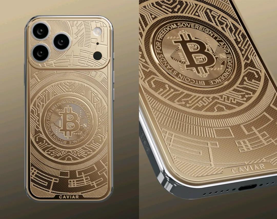 分为Bitcoin 18K和Bitcoin 24K这两款,机身采用相同的设计风格,后盖取消了苹果Logo,改用浮雕比特币标志。