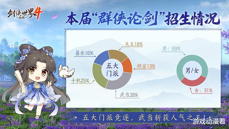 报告显示,少侠的男女性别占比分别为69%与31%,每十位闯荡江湖的少侠中,或许就有三位是英姿飒爽的女侠。江湖广阔,不论巾帼须眉,皆可在此寻得一方天地。