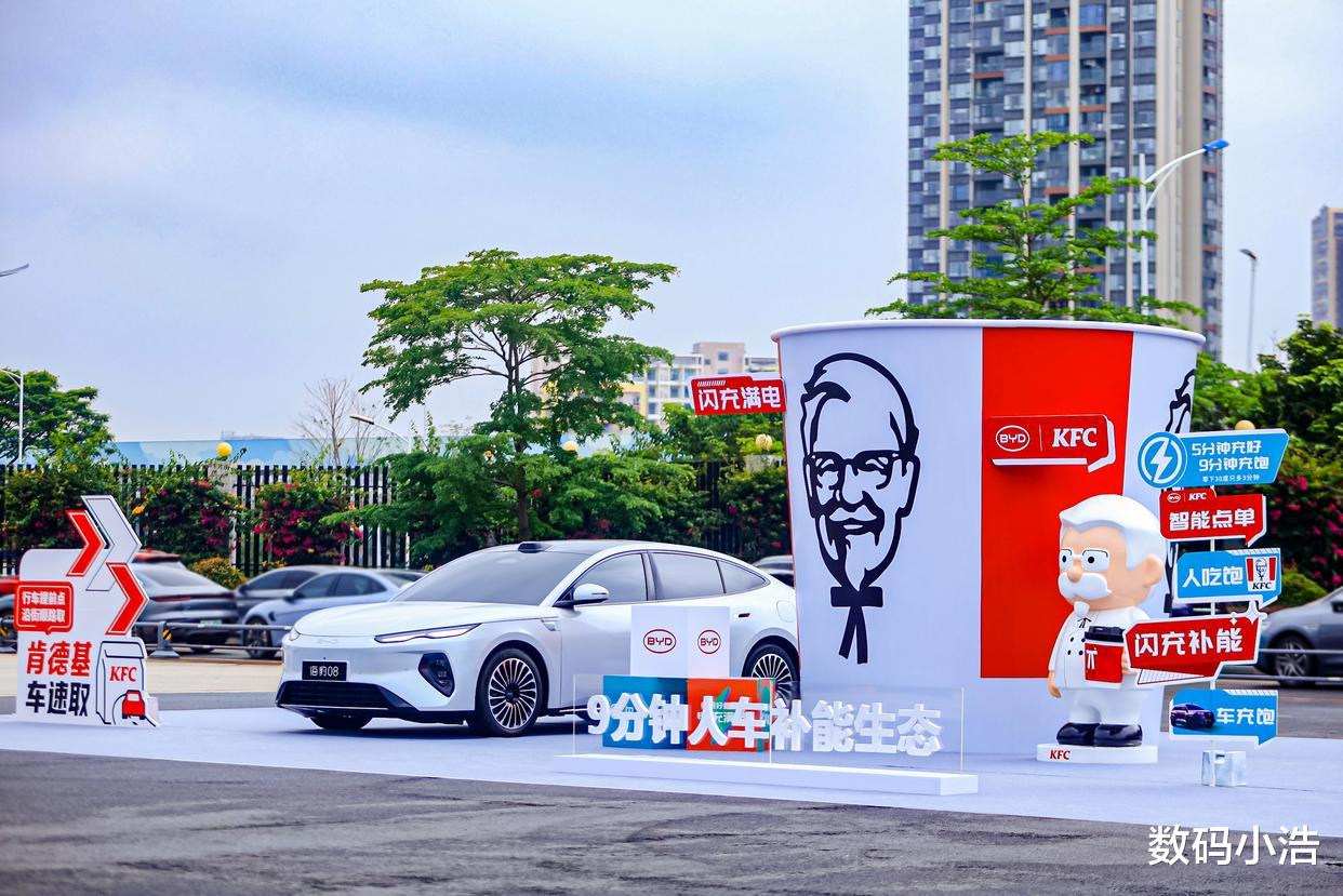 4月8日,比亚迪与肯德基在深圳正式达成战略合作,全球新能源汽车销量冠军携手中国餐饮巨头,跨界打造9分钟一站式人车补能全新体验,比亚迪闪充趣味出圈。