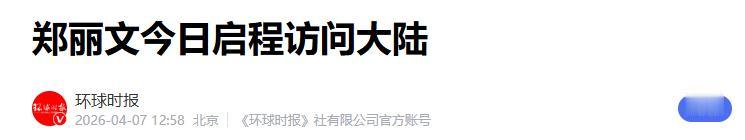 4月7日,国民党主席郑丽文正式率团启程前往大陆,开启为期6天的大陆访问行程。