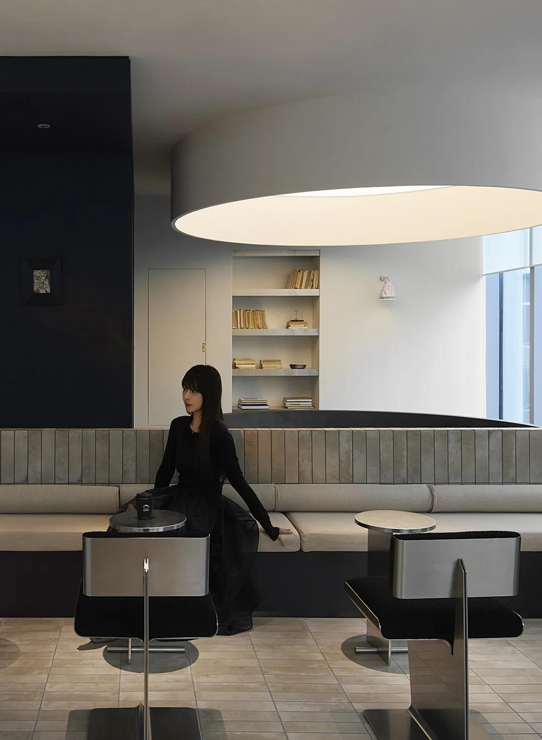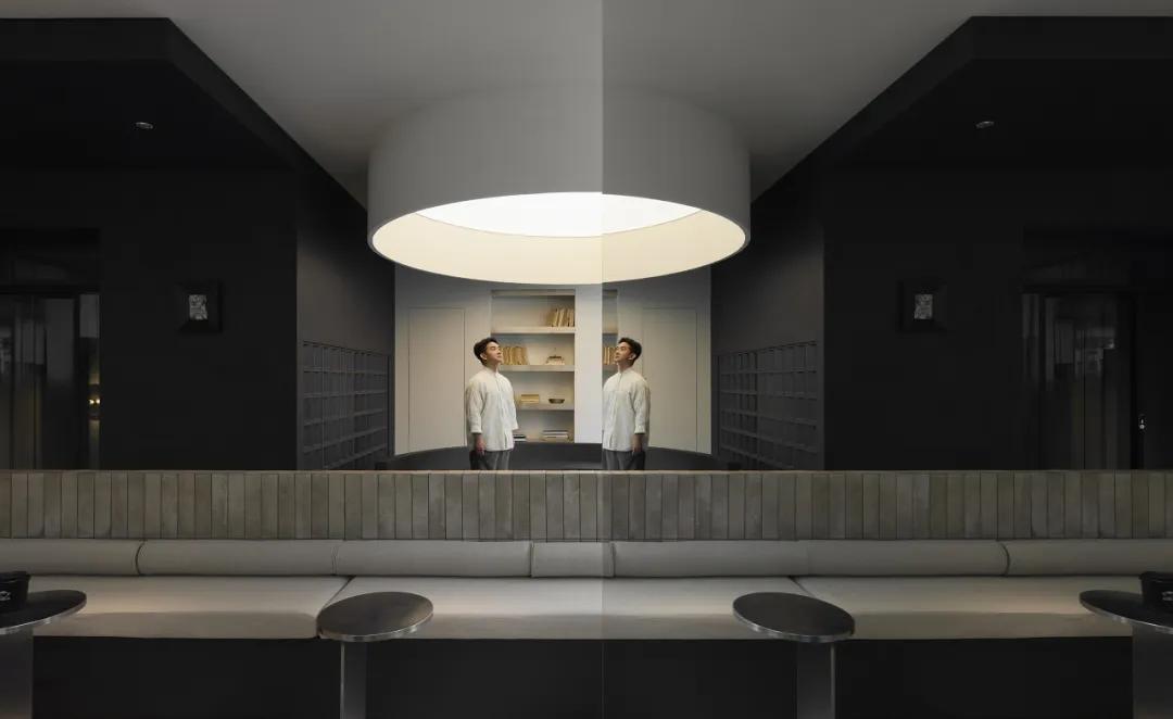 那盏圆形顶灯如光的显影剂,在空间中央凿出一方思考的龛位,让独处者的情绪在光的包裹里完成深度折叠。
