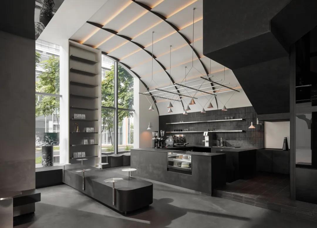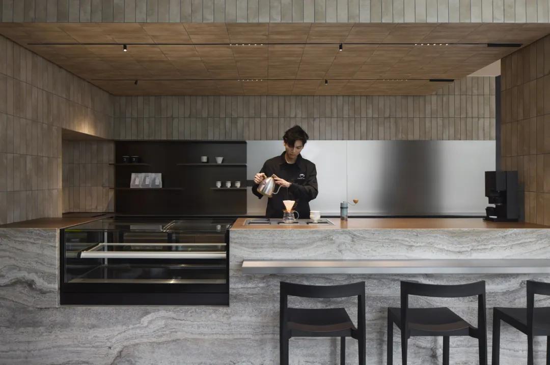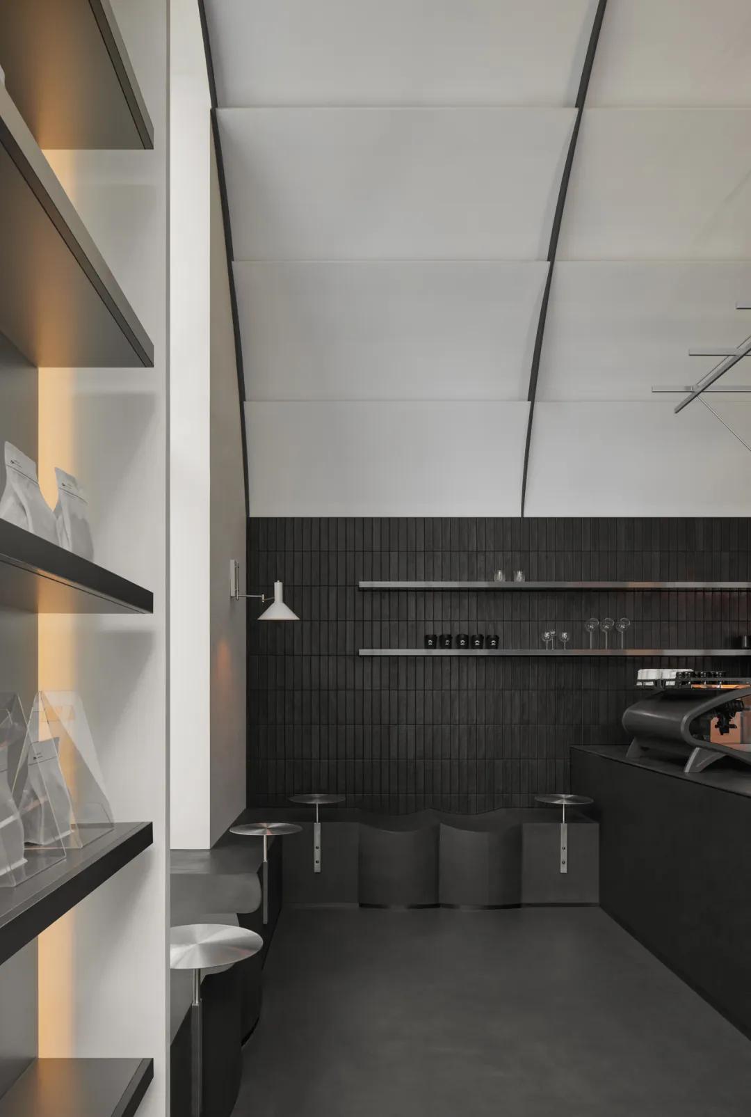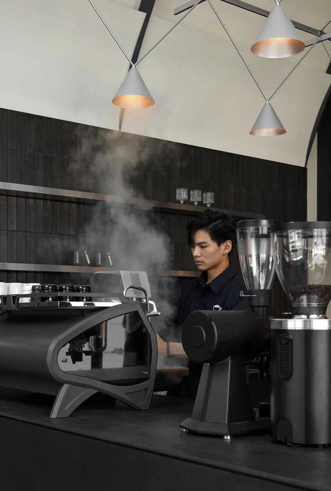 墨黑是空间的思考基底,如夜晚静谧的深海,承载着咖啡萃取的每一次专注;