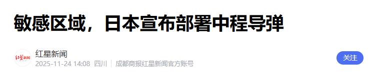 2.《敏感区域,日本宣布部署中程导弹》2025-11-24 14:08 | 来源:红星新闻