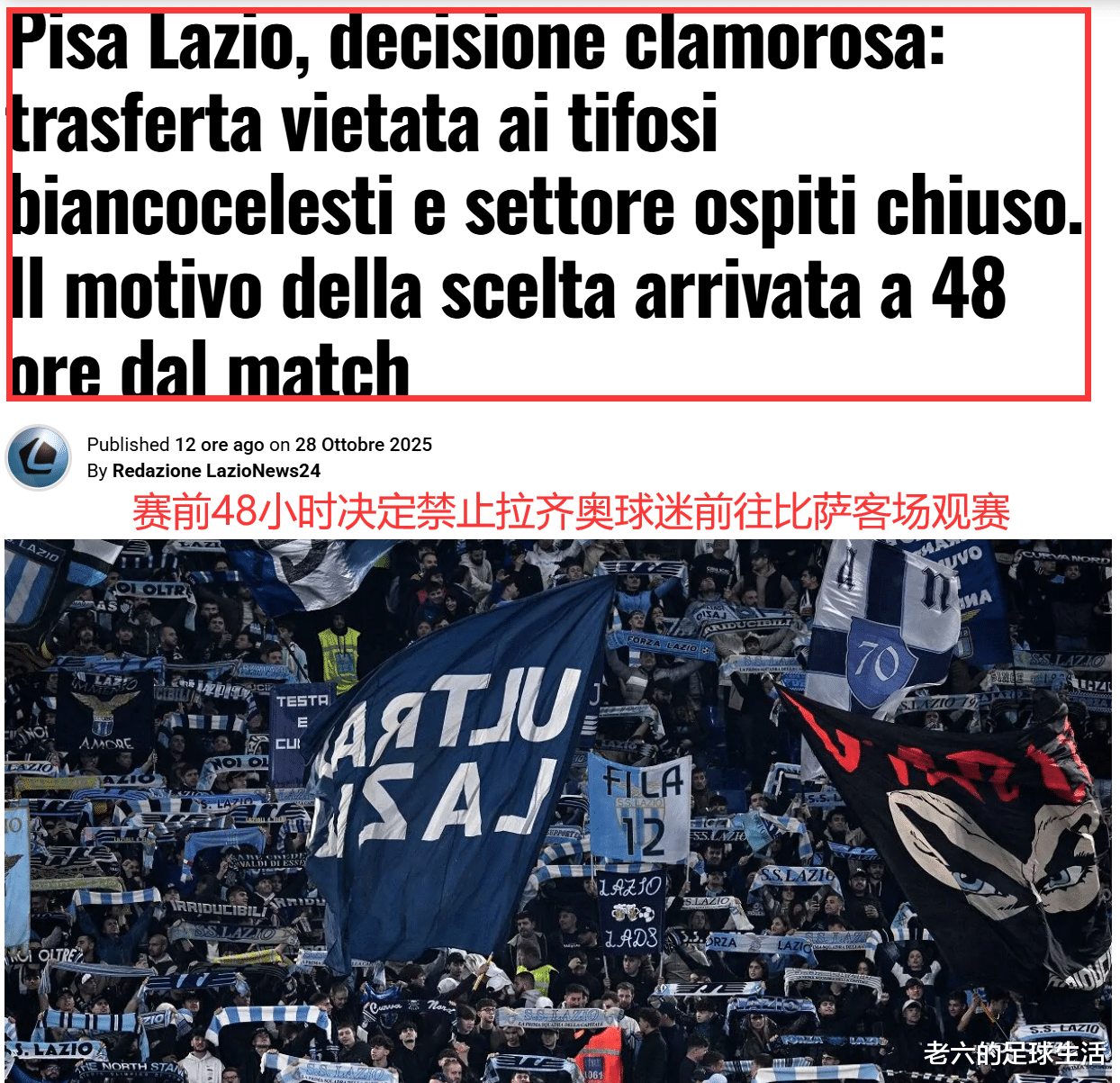 毕竟此前拉齐奥的球迷前往罗马的主场参与德比战的行为历历在目,他们在入场区的花坛里藏着刀具,携带棒球棍等各式各样的武器,甚至开赛前球迷用自制炸弹炸了辆车,逼迫当地警方出动水炮车镇暴。