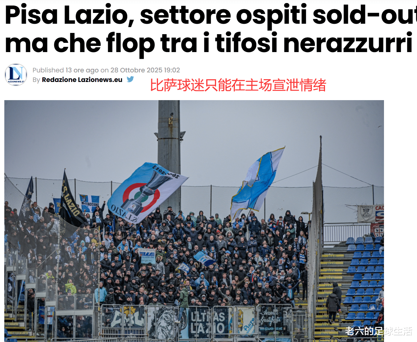 但出人意料的是本场比赛拉齐奥的球迷都无法入场,国家体育赛事观察站根据安全委员会对本场危险性的评估做出决定禁止拉齐奥球迷前往比萨观看比赛。