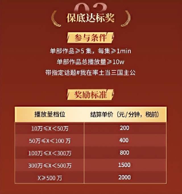 而且官方还贴心地准备了“保底达标奖”,只要你认真做,单部作品超过5集,每集不少于1分钟,播放量达标了就能拿钱。这种结算方式对新人创作者特别友好,最高一分钟能结算到2000元。