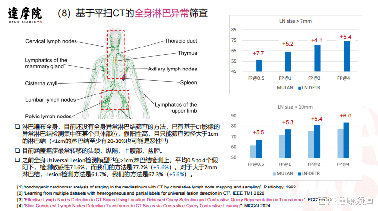 此外,吕乐博士及团队开发的基于平扫CT精准检测淋巴结的AI模型已经上线,这也是目前全球唯一的可以通过平扫CT来进行淋巴异常筛查的产品。吕乐博士表示,AI在医疗领域的应用应聚焦于那些对患者至关重要、尚未得到解决、且急需借助计算机技术来解决的难题。只有这样,AI技术才能够有效填补医疗实践的空白,进而提升医疗服务的质量和效率,这也正是AI技术在医疗领域发挥最大价值的体现。