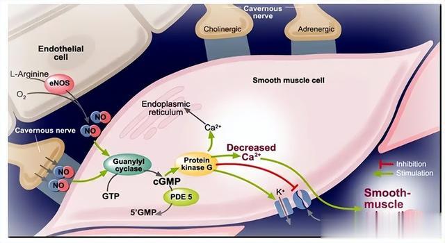 研究团队后又转变方向,发现正常情况下,人体在受到性刺激的时候,会自然而然的释放出大量一氧化氮(NO),这样可以快速的激活环磷酸鸟苷(cGMP)信号通路。促使海绵体的平滑肌放松,让血液大量的流入,这样就会使其产生正常的勃起。但是呢,在人体内又存在着一种名为5型磷酸二酯酶的物质,它会将磷酸鸟苷去掉,中断掉这个勃起的信号。