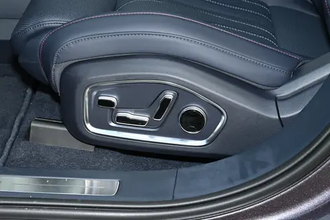 底盘经过专业团队调校,搭了空气悬架和CDC电磁减振系统。过减速带时,悬架自动变软,滤震特别干净;走坑洼路时,又能变硬保持支撑性。弯道驾驶时,车身侧倾控制得很好,转向精准没虚位,再配合50:50的前后轴重量分配,开起来又稳又灵活——自己开能享受驾驶乐趣,带家人时又能保证舒适。