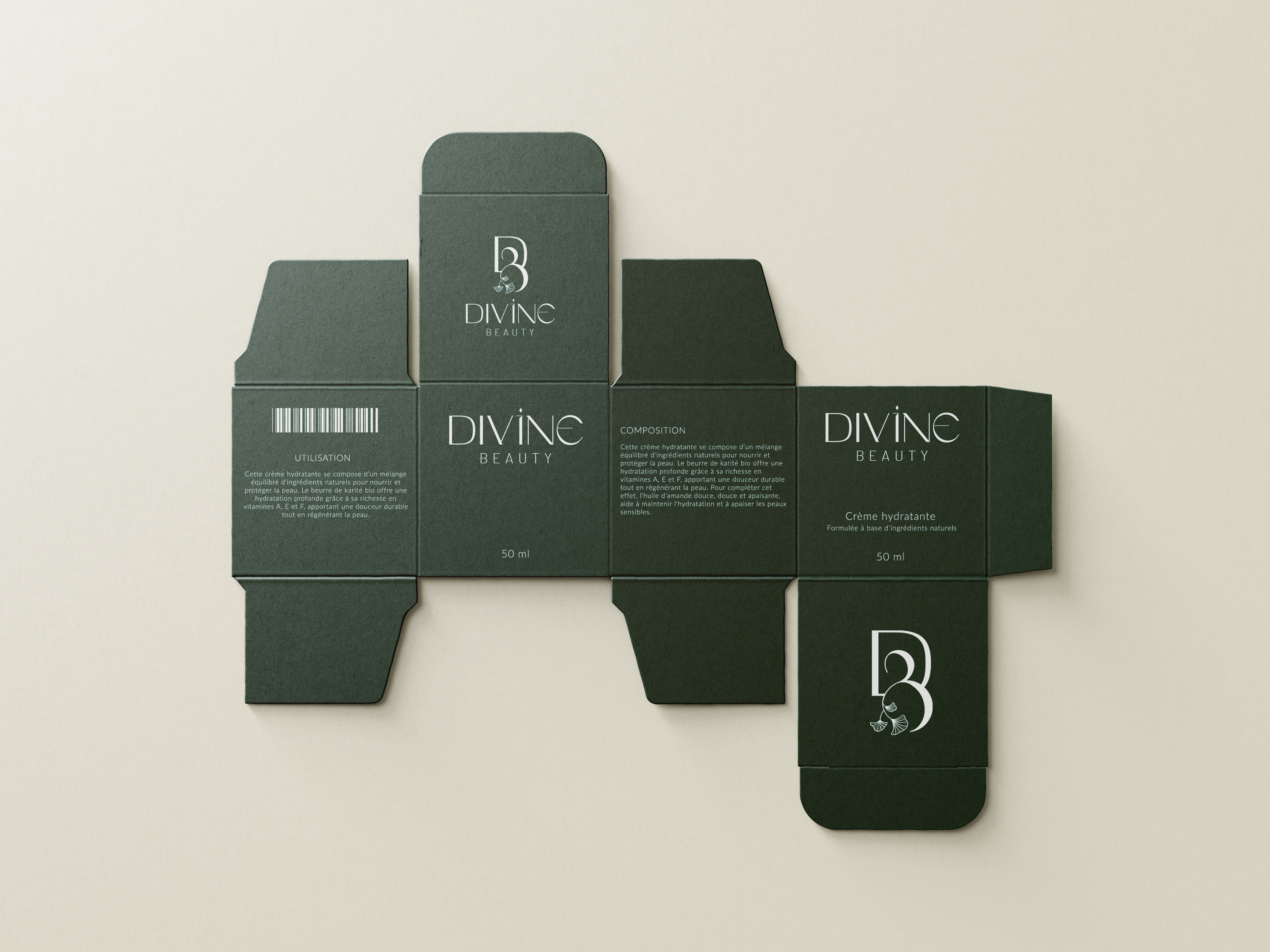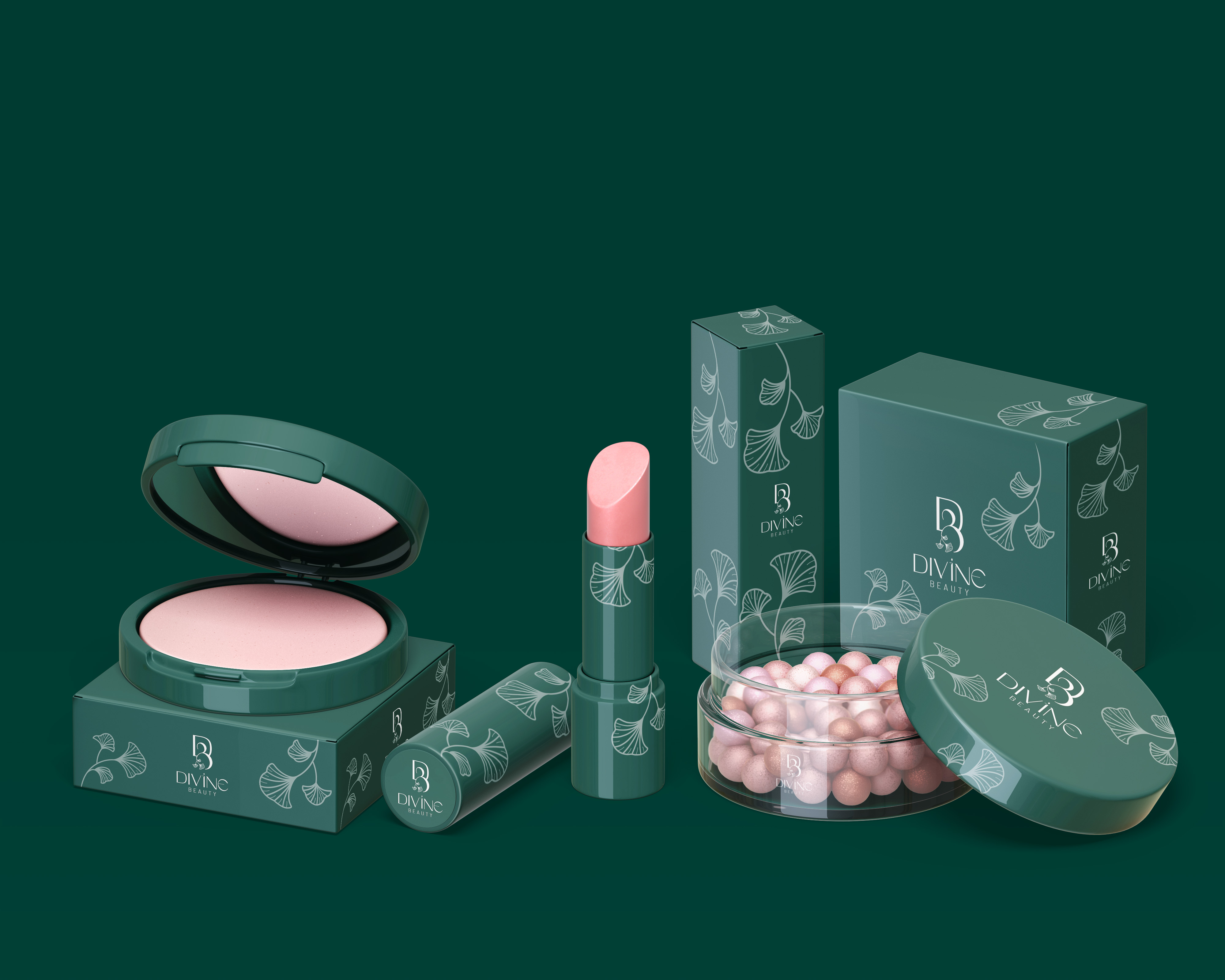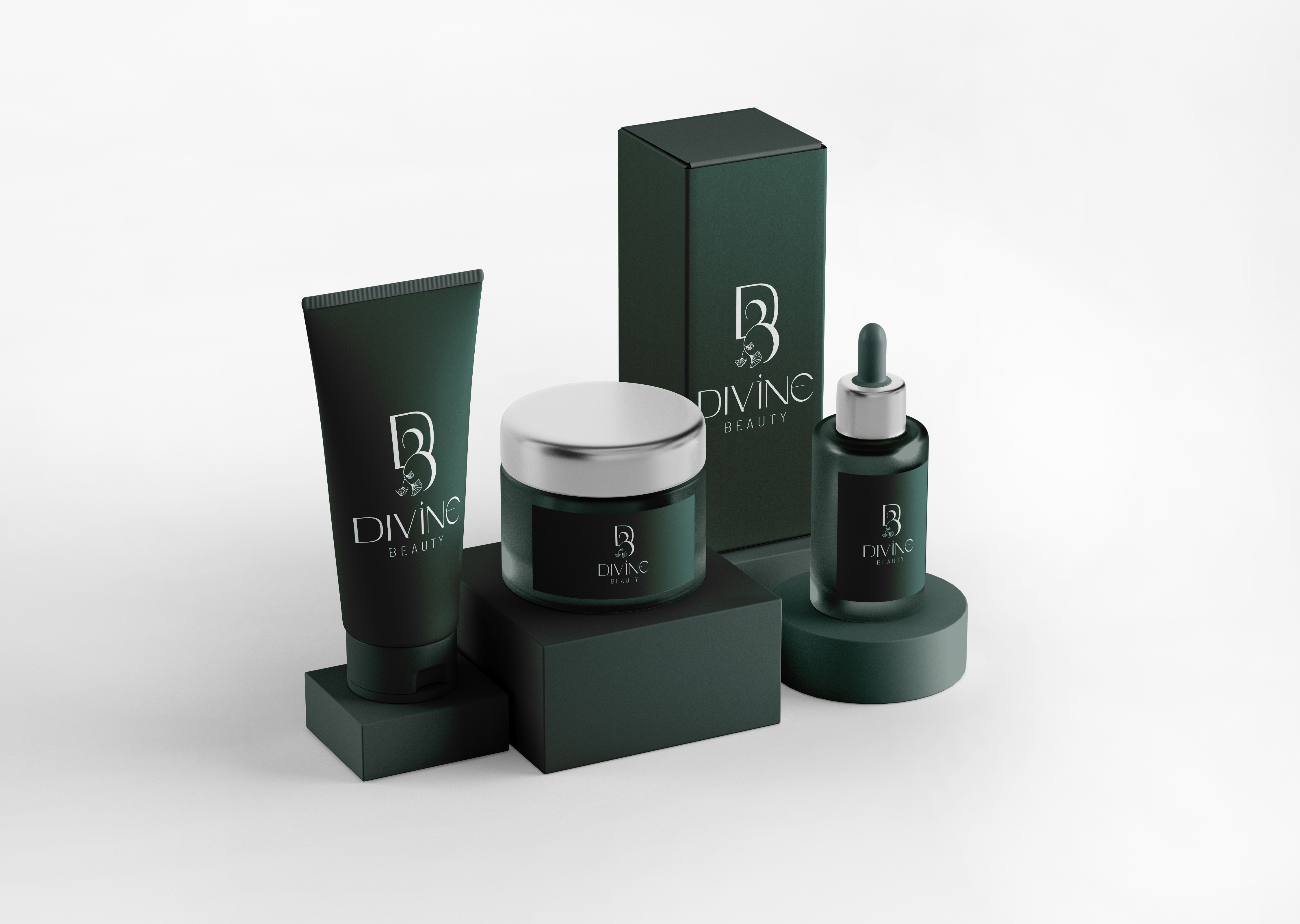 这些是 Divine Beauty 的包装设计,核心风格围绕 “轻奢质感 + 自然符号” 展开: