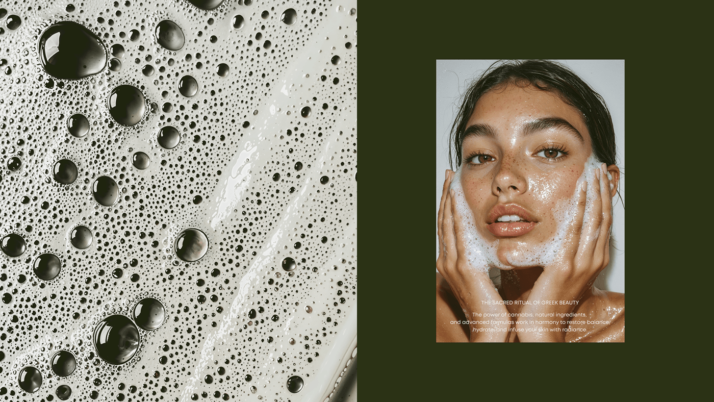 色调与材质:以低饱和的橄榄绿、浅米色为主,搭配磨砂瓶身 / 哑光纸盒,既呼应天然草本的质感,又传递古希腊美学的克制优雅;