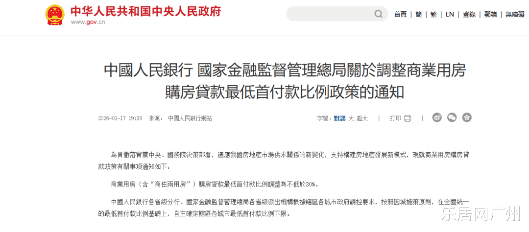 1月15日,央行将商业用房(含“商住两用房”)的购房贷款最低首付款比例统一调整为不低于30%。