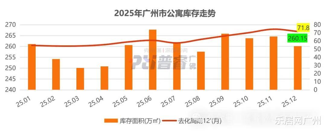 目前,公寓去库存压力较大,截至2025年12月,库存面积高达260.15万㎡,去化周期71.8个月。