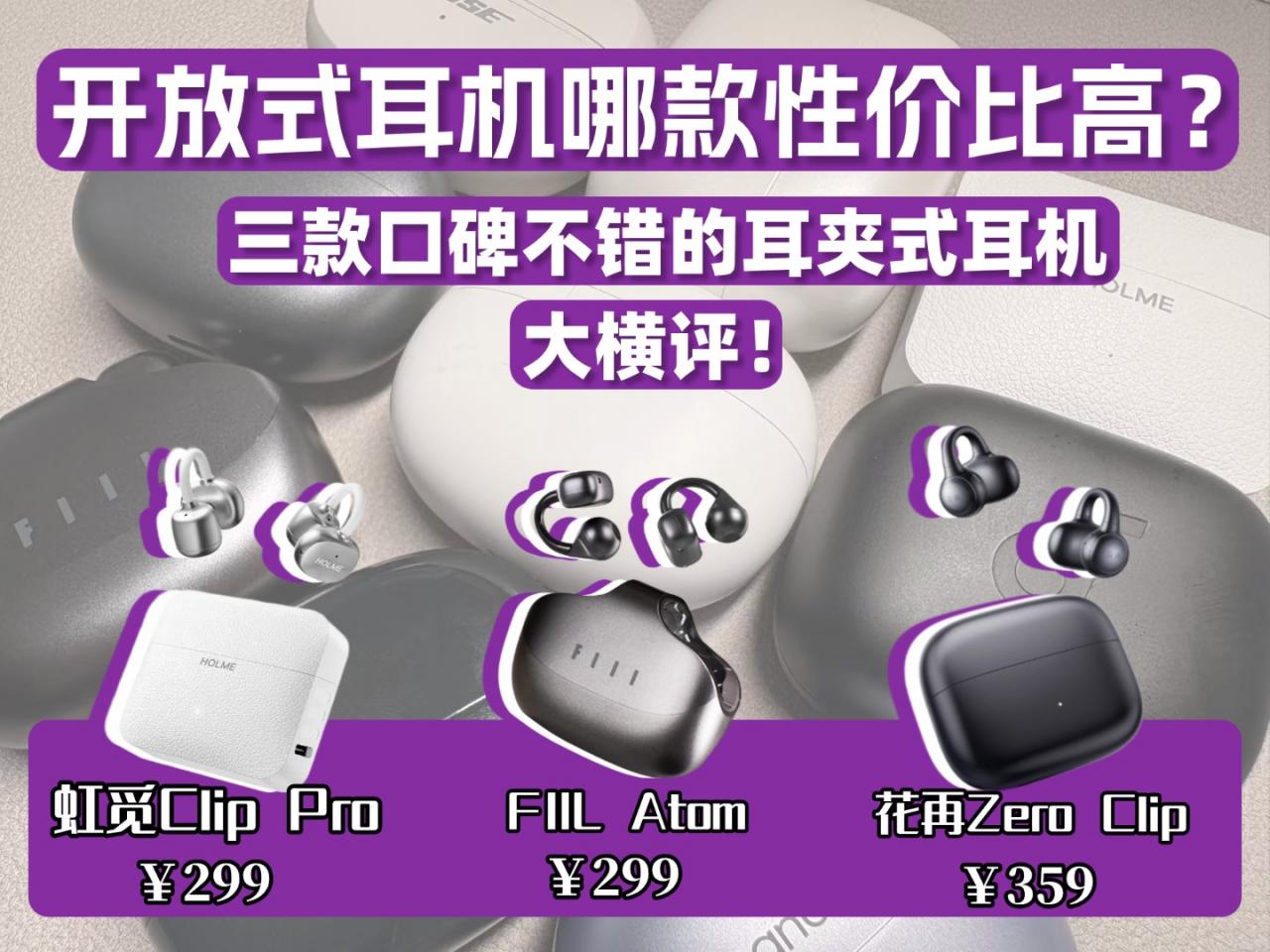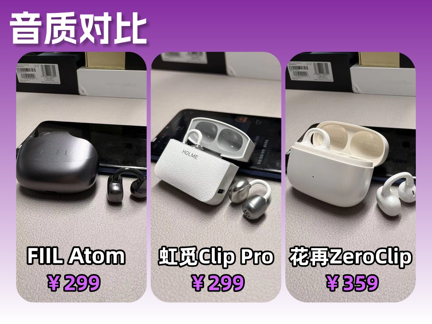 这次我特意挑了三款最近卖得不错、价格也不算贵的机型,打算好好对比一下,给朋友还有有同样困惑的人做个参考。这三款分别是 299 元的虹觅 Clip Pro、299 元的 FIIL Atom 和 359 元的花再 Zero Clip。我会从大家平时最在意的佩戴、音质这些方面来测试,看看到底哪款真的值得买。要是你也正在纠结选哪款开放式耳夹耳机,说不定看完我这份实测,就能有主意了。