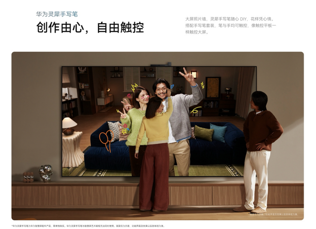 更让人惊喜的是,华为Vision智慧屏 6首次支持了华为灵犀手写笔。在感知模块和星闪技术的加持下,这支笔的响应几乎感觉不到延迟,笔尖走到哪里,笔迹就跟到哪里。小朋友可以在大屏上自由涂鸦,大人做会议记录时也能直接批注文件,写完还能扫码带走,电视的玩法一下子多了不少。