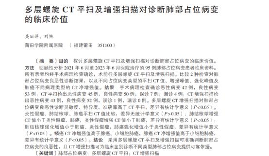 参考资料[1]吴丽萍,多层螺旋 CT 平扫及增强扫描对诊断肺部占位病变 的临床价值, 2024-06-30