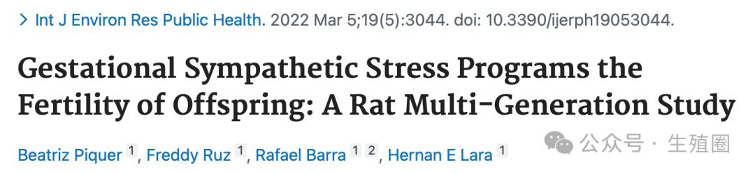 Gestational Sympathetic Stress Programs the Fertility of Offspring: A Rat Multi-Generation Study. Int J Environ Res Public Health. 2022 Mar 5;19(5):3044. doi: 10.3390/ijerph19053044.