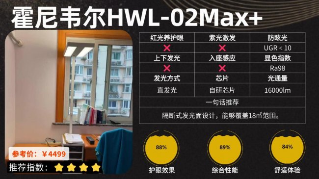 护眼大路灯第三名:霍尼韦尔HWL-02Max+;隔断式发光面设计,能够覆盖18㎡范围。