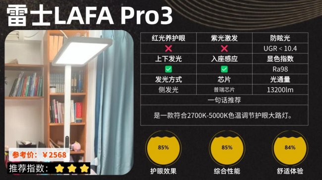 护眼大路灯第八名:雷士未来光Pro3;支持在2700K–5000K色温区间内自由调节。