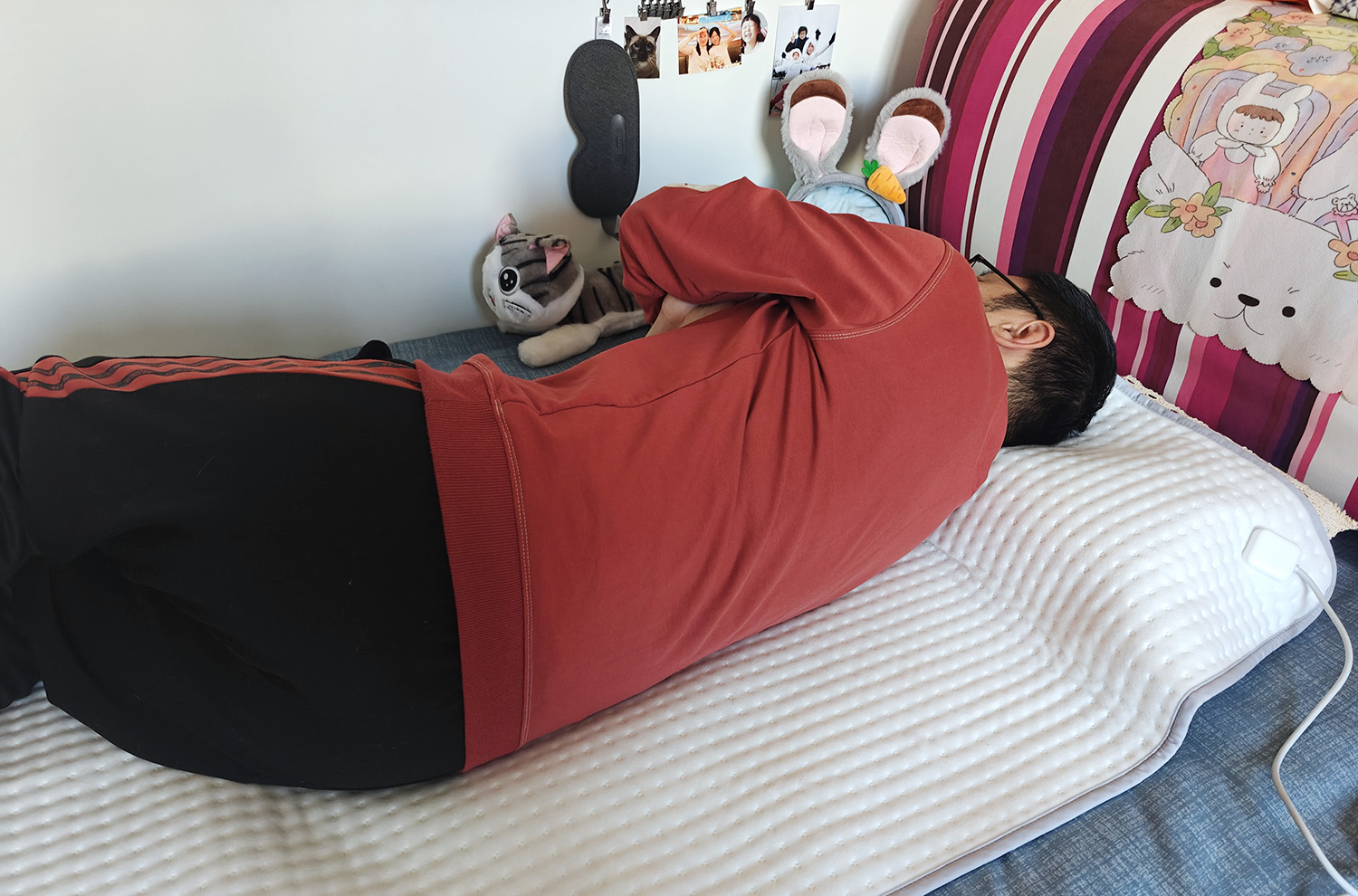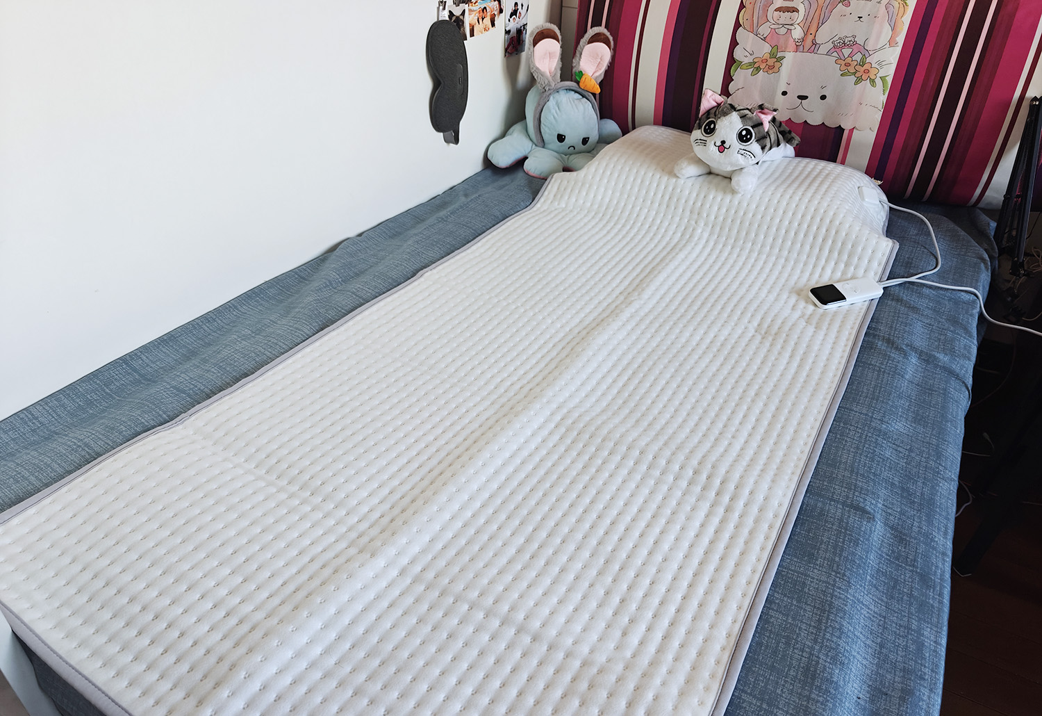 因为是单人电热毯,所以它的宽度只有一米左右,正好覆盖单人身体,不浪费也不占地方,一个人用刚刚好。