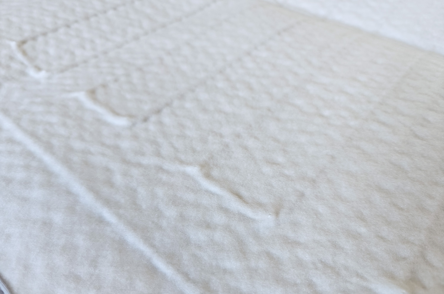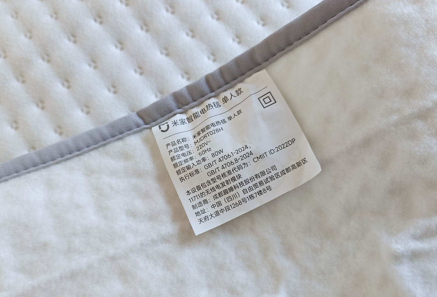 近距离看这个材质,非常的漂亮,虽然它是可以直接裸睡在上面的,但我为了保证床铺的完整性,还是习惯性的把它铺在了床单的下面,多少有点浪费米家电热毯的好意了。