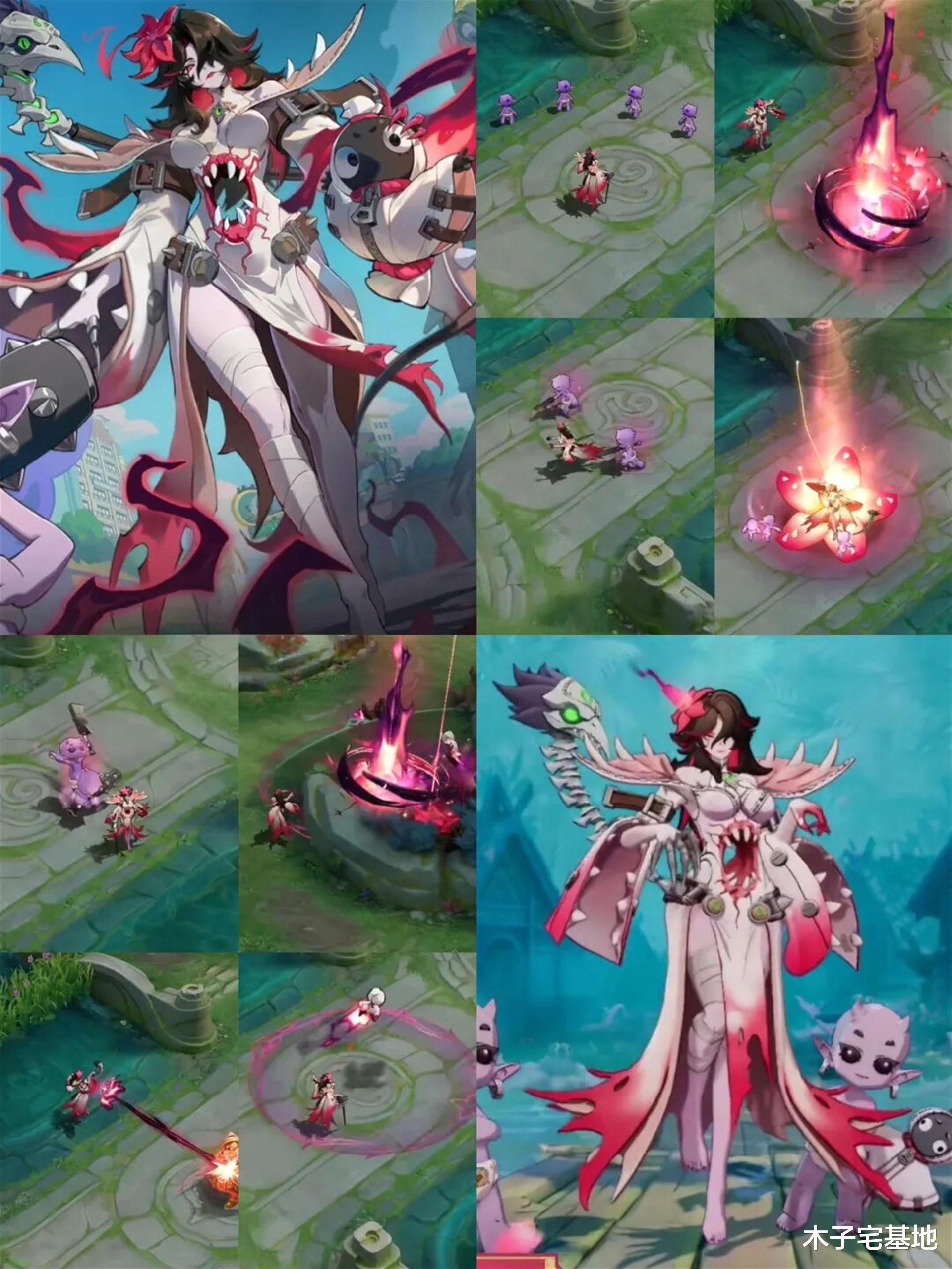 从造型来看安琪拉一改往日造型,整个人周身环绕着闪烁的烛光,两个可爱的骷髅小精灵伴随左右,背景中亡灵节特色的建筑更为她增添了浓厚的节日氛围。技能特效方面主打花瓣元素与亡灵节主题的完美结合,一技能发射出可爱的小鬼头,命中目标后会留下小鬼头印记,二技能释放的小鬼会伴随旋转效果,大招前端则有亡灵之花装饰,在命中后会出现会变换的表情印记。