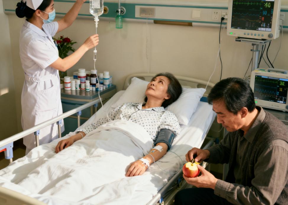 徐佩云听后咬着嘴唇,轻声问:“那我能好起来吗?”医生点点头:“能,关键是不要再熬夜、不要怕、不要自己乱停药。”丈夫在旁边握着她的手,第一次露出一点坚定的神情。随后,医生立即给徐佩云办理的住院手续。入院后,护士为徐佩云安上静脉通道。第一瓶药正是利妥昔单抗,透明的液体顺着输液管缓缓滴入。医生提前给她用了抗过敏药,并全程监测反应。徐佩云一开始有点发冷、心跳加快,护士马上调慢滴速,不久症状缓解。接着又陆续输入环磷酰胺、阿霉素、长春新碱及泼尼松,整整持续六个小时。
