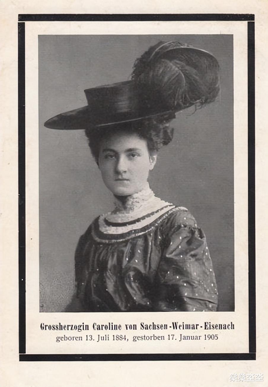 父亲去世后,卡罗琳被随意订给了萨克森-魏玛-艾森纳赫大公威廉·恩斯特,她本人对这场婚姻非常抵触。在婚礼的最后一刻,她都试图反悔,却最终在皇帝威廉二世和皇后奥古斯塔·维多利亚的极力“劝说”下同意结婚。