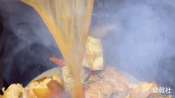 接着放几颗八角、两片香叶、一小块桂皮,再来几个干辣椒,一起炒出香味。然后把所有东西倒进高压锅里,加适量热水,压上十来分钟,让猪蹄变得软烂又入味。