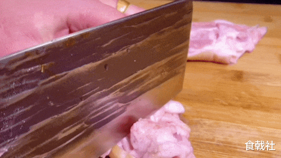 2再把洗干净的猪蹄放在案板上,用刀把猪皮切成小块,把猪蹄切好后,先将它放进大碗中。