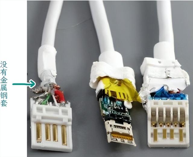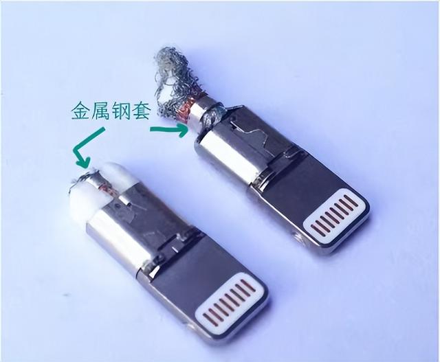 一般充电线内部有4根线,而品质较好的充电线则有多达9层线芯和防护结构,内部电线更粗,还添加了抗拉纤维、金属屏蔽层和金属编织网。