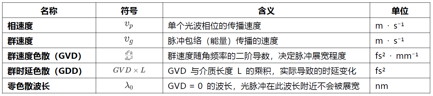 关键点:脉冲越短,颜色(波长)越多,越容易被色散“拆散”。